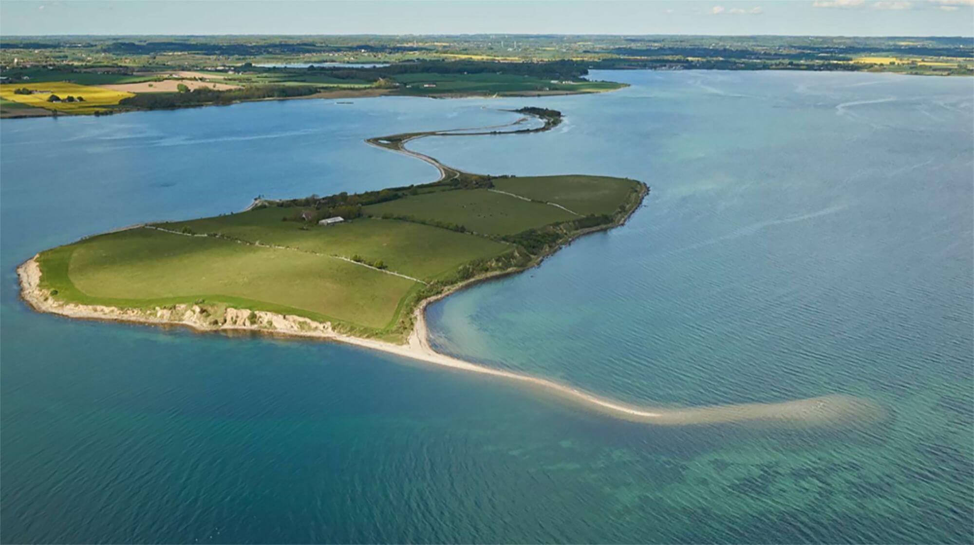 Øen er lav, åben og omgivet af vand, med lange kig over strandenge, marker og hav. Her er ingen byliv og ingen trafik – kun stilhed, fugleliv og plads til at være til stede.